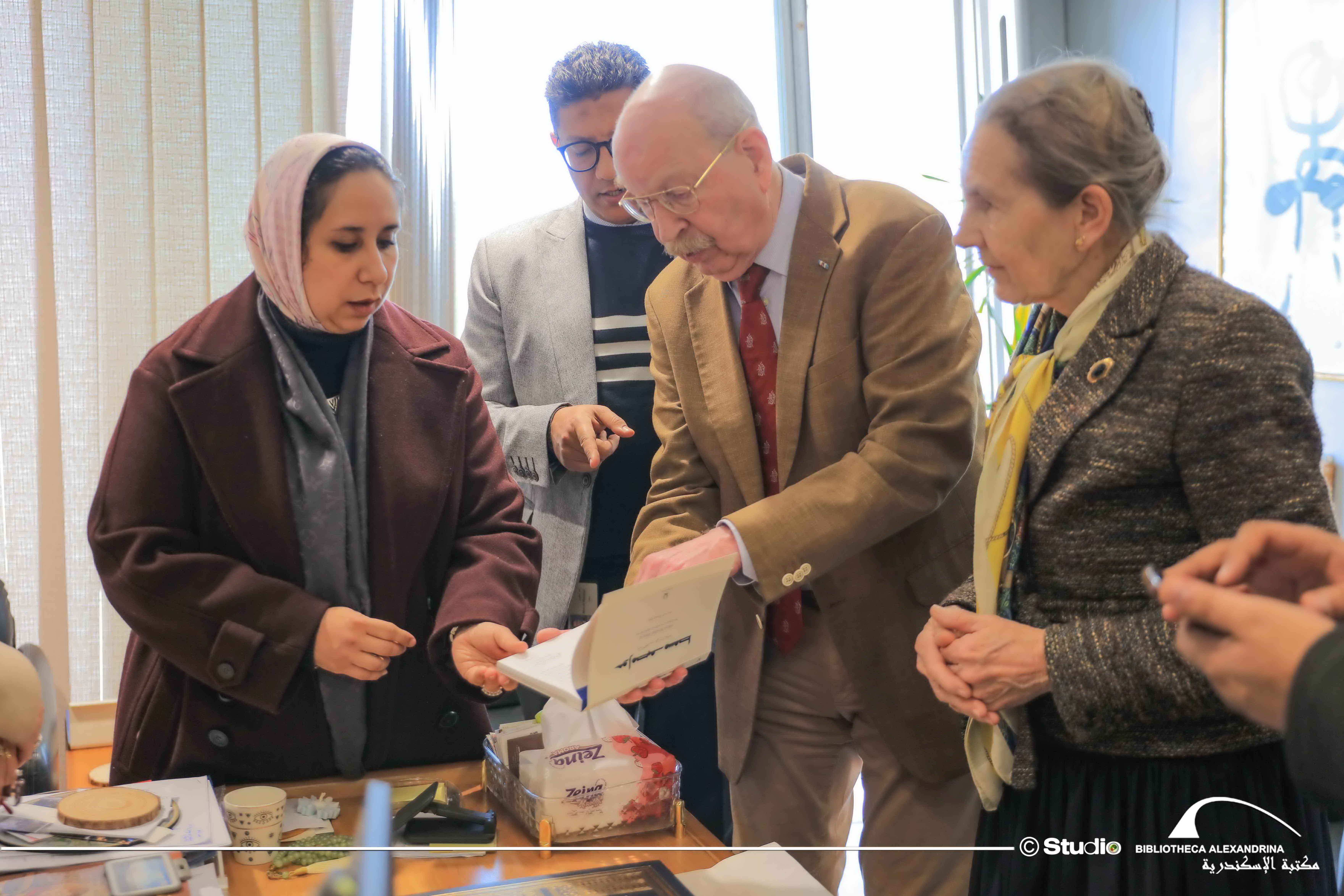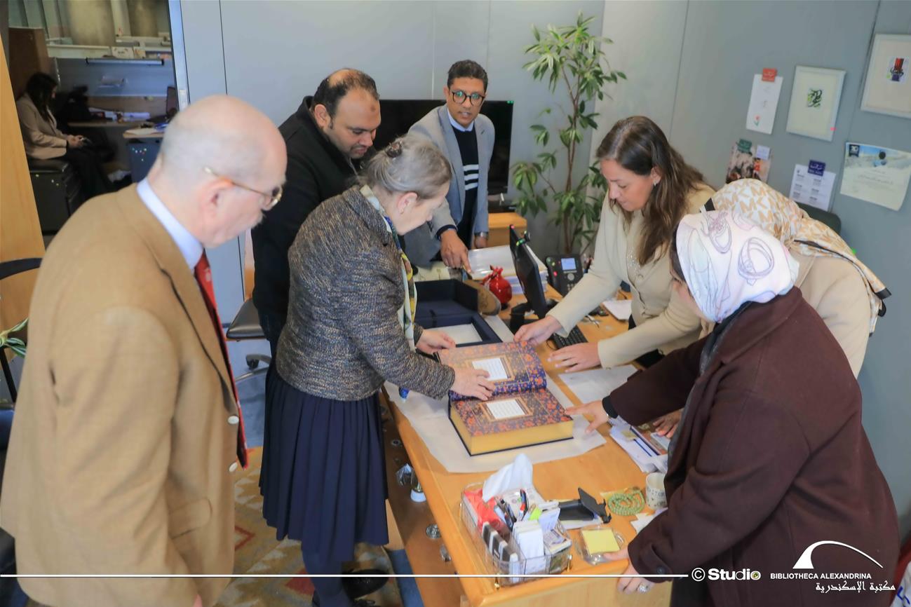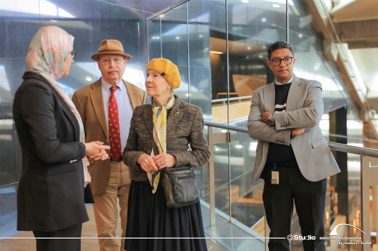 Dr. Thomas Milo, developer of the Mushaf Muscat, “The Sultan Qaboos Quran,” has paid a visit to the Bibliotheca Alexandrina, accompanied by his wife. He was received by Dr. Marwa El-Wakil, Head of the Academic Research Sector; Ms. Heba El-Rafey, Acting Head of the External Relations and Media Sector; and Dr. Ahmed Mansour, Director of the Writing and Scripts Center.